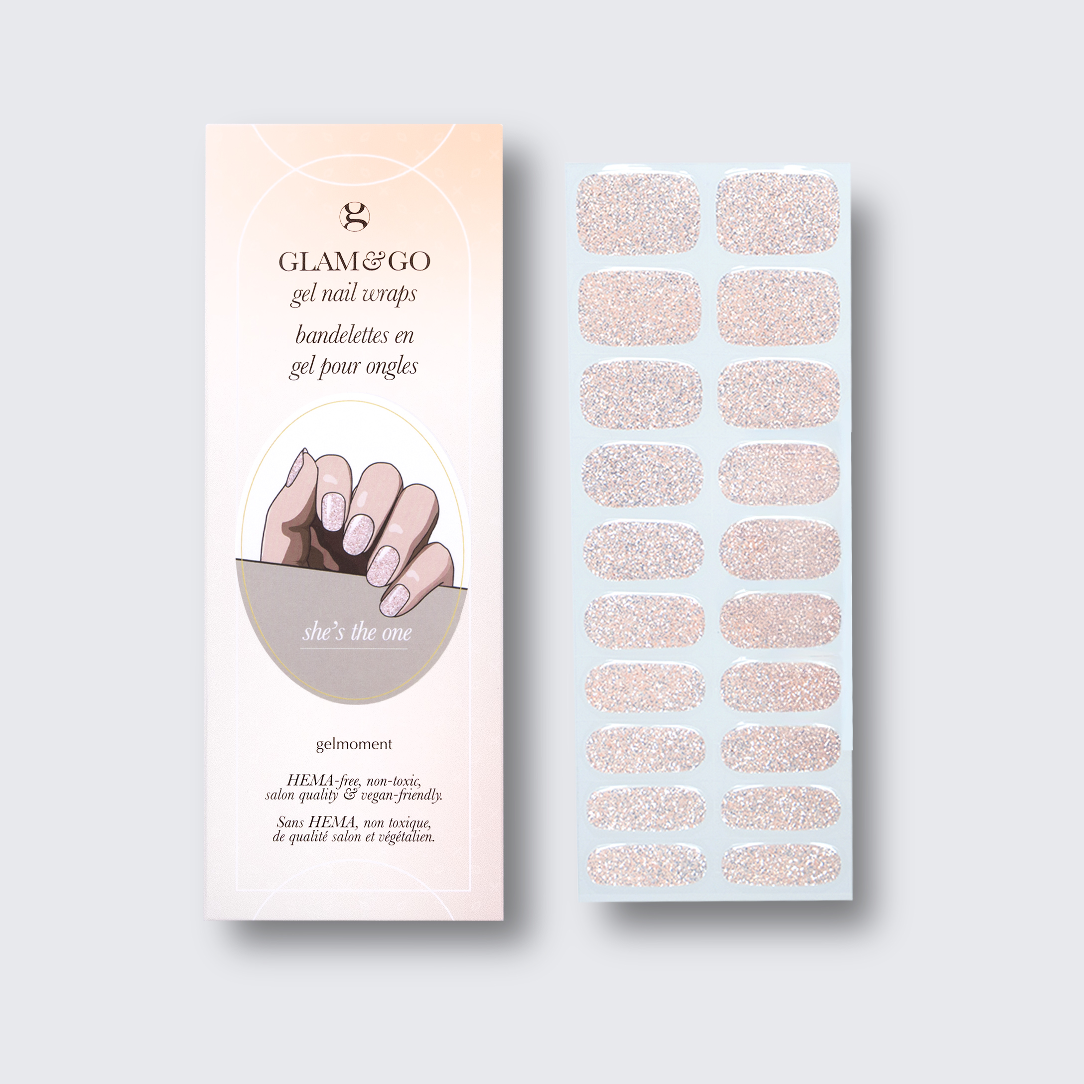 Plus, not only do GLAM & GO gel nail wraps provide the same glossy finish you know and love from our regular gel polish, but they are also HEMA FREE and have a wear time of up to 14+ days.